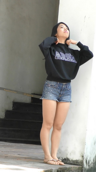 超短紧身牛仔短发美女 小巧可